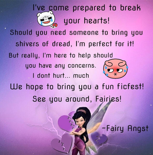 Please use the Hashtag #fairyficfest and tag @fairyficfest in the picture so it won't affect your word count. We encourage you not to forget the tag so we can post your work on our Official Twitter Page.